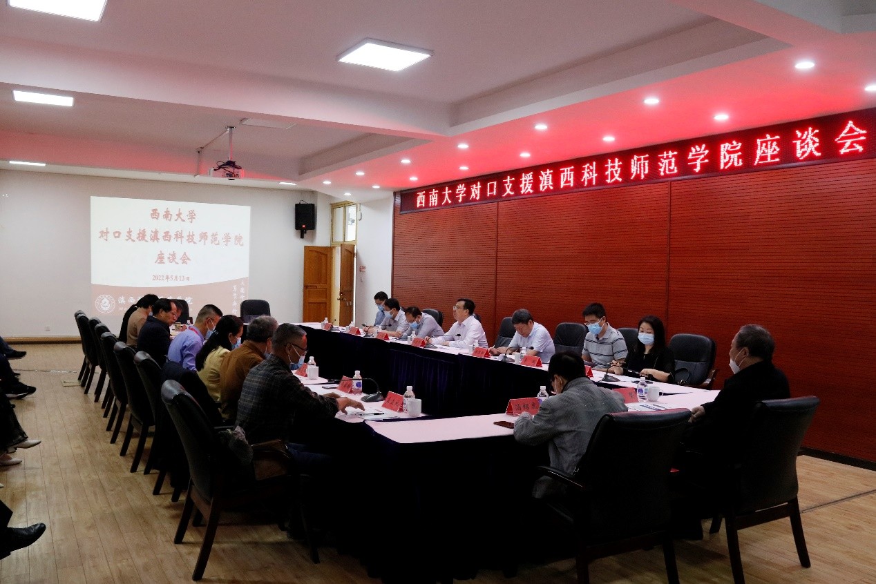 5月12日,双方召开对口支援工作座谈会,座谈会由副校长黄城书主持。会上,王进军对我校对口支援工作取得的成效表示祝贺,他从本科教育、研究生教育、社会服务等方面详细介绍了西南大学的基本情况和发展历程,为我校带来了一流大学的先进办学经验和管理办法。他表示西南大学党政领导高度重视对口支援滇西科技师范学院工作,将继续贯彻落实教育部对口支援工作的部署和要求,推动各项帮扶工作落细落实。